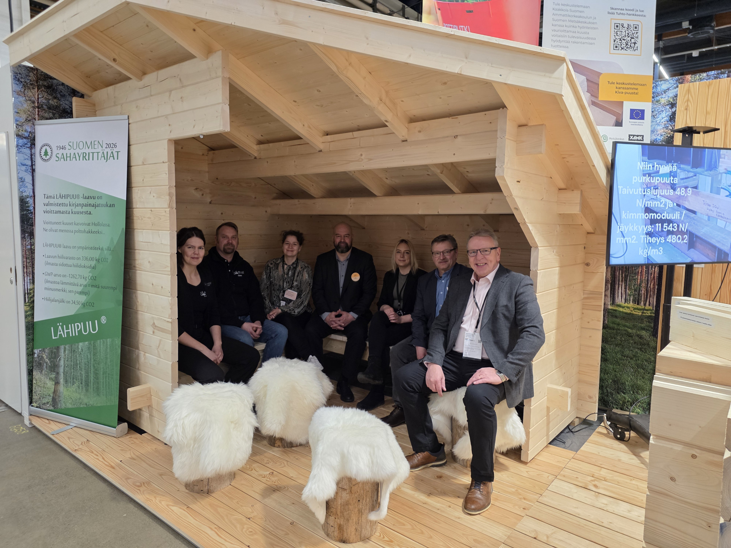 Perinteiset Kevätmessut kokoavat vuosittain kymmeniä tuhansia kävijöitä Helsingin Messukeskukseen. Kirjanpainajan tuhoamat kuusikot ovat nousseet messukävijöiden kanssa keskusteluun. Osastollamme oleva AB-Wood Oy:n valmistama laavu on saanut ihastuneita kommentteja. Kirjanpainajapuusta saa loistavaa rakennusmateriaalia, kun korjuu tehdään riittävän aikajänteen sisällä. Laavuun tarvittavat tukit hankittiin Hollolan kunnan omistamasta metsästä.